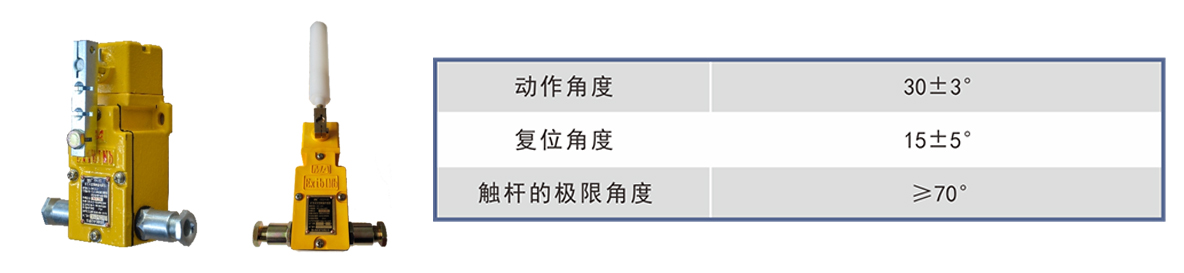 采用單級雙向跑偏開關(guān),具有體積小、重量輕、強(qiáng)度高的特點(diǎn);觸桿外套阻燃尼龍棒,能靈活滾動(dòng)伸縮,具有耐磨、適用性強(qiáng)的特點(diǎn)。主要應(yīng)用于煤礦輔助運(yùn)輸設(shè)備