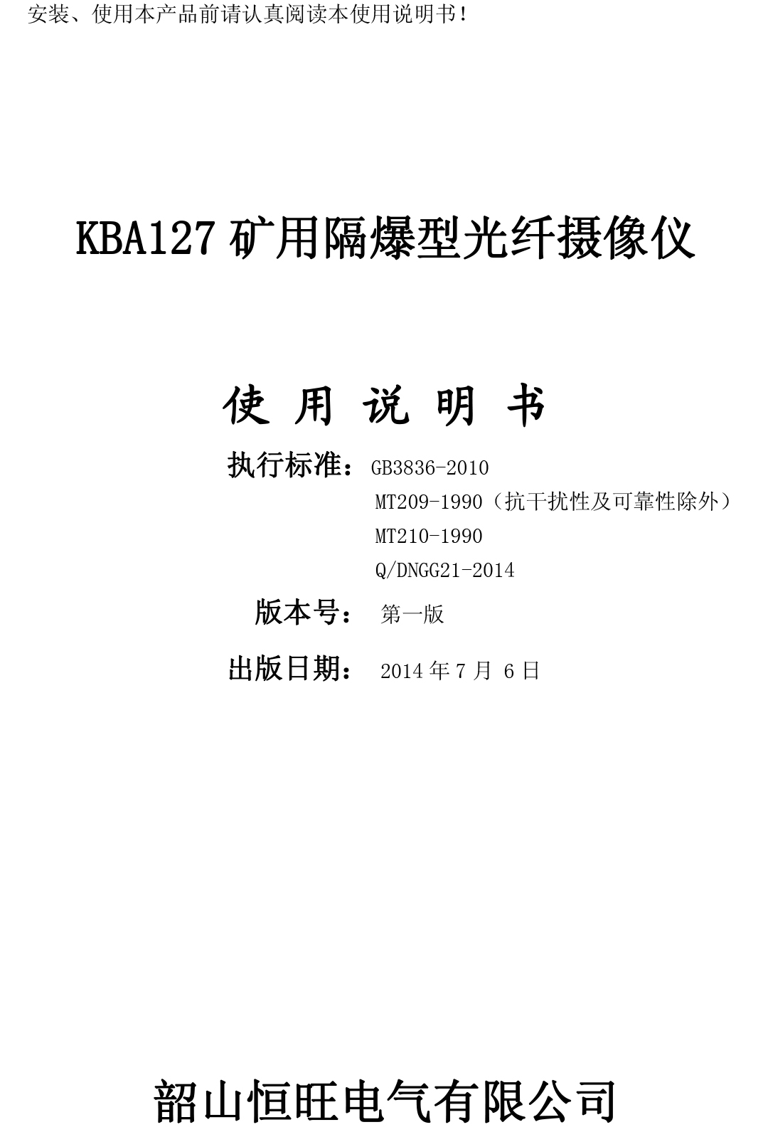 xiao12666@163.comKBA127礦用隔爆型攝像儀說(shuō)明書