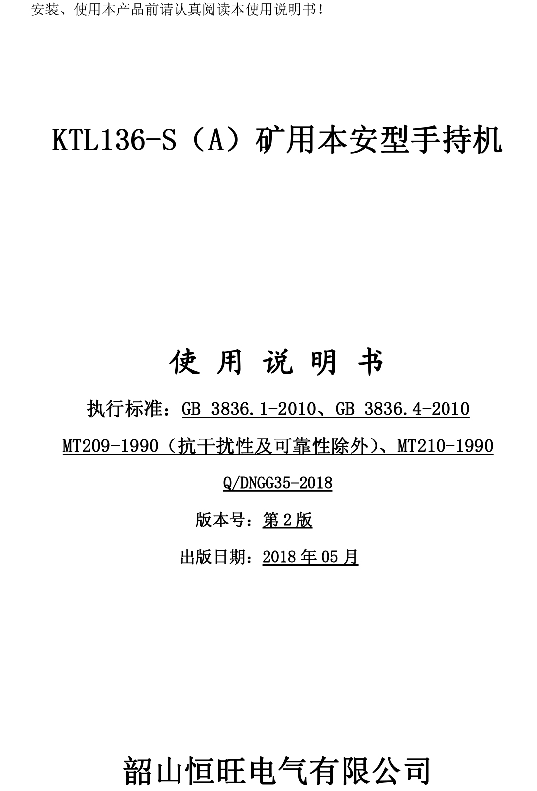 xiao12666@163.comKTL136-S(A)礦用本安型手持機說明書