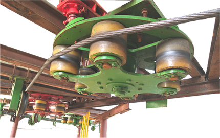 當(dāng)以上情況發(fā)生后,可能會(huì)發(fā)生較嚴(yán)重的飛車、打滑事故,鋼絲繩制動(dòng)器對(duì)鋼絲繩進(jìn)行制動(dòng),能有效地防止事故的發(fā)生,適用于摩擦式可摘掛抱索器和卡鉗式可摘掛抱索器。