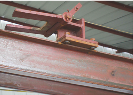 (專利號(hào):ZL201721080402.2)利用逆止的原理,當(dāng)“猴車”發(fā)生飛車、打滑時(shí),對(duì)吊椅進(jìn)行強(qiáng)制阻擋,使每?jī)煽鐧M梁之內(nèi)能擋住且停留一至兩人,以避免乘人在飛車或打滑時(shí)疊加相撞而發(fā)生群死群傷事故。它是當(dāng)前置三級(jí)制動(dòng)裝置(高速制動(dòng)、安全制動(dòng)、鋼絲繩制動(dòng))均失去制動(dòng)力時(shí),能有效保護(hù)乘人的人身安全。