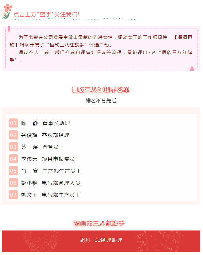 【湘潭恒欣】婦聯(lián)開展“三八紅旗手”評選活動