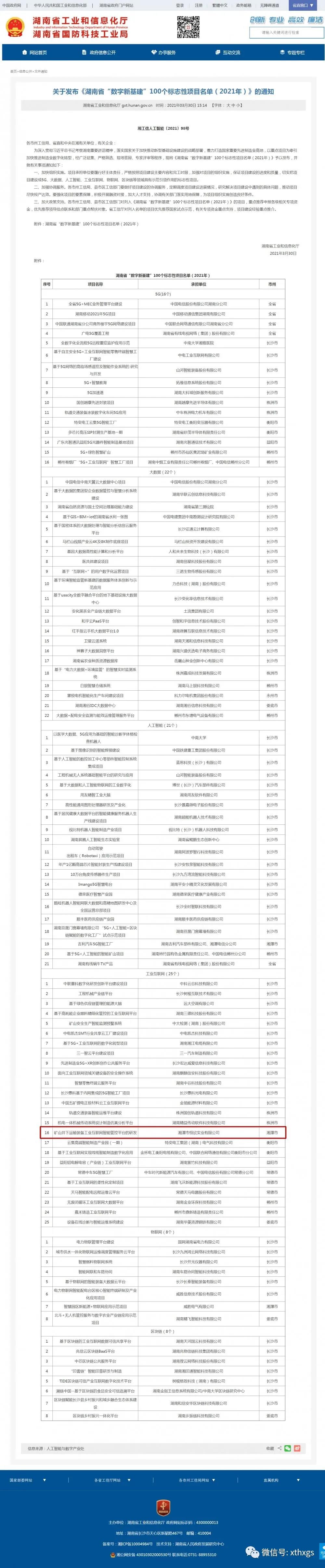 【湘潭恒欣】承擔的礦山井下運輸裝備工業(yè)互聯(lián)網(wǎng)智能管控平臺的研發(fā)列入了湖南省“數(shù)字新基建”100個標志性項目。