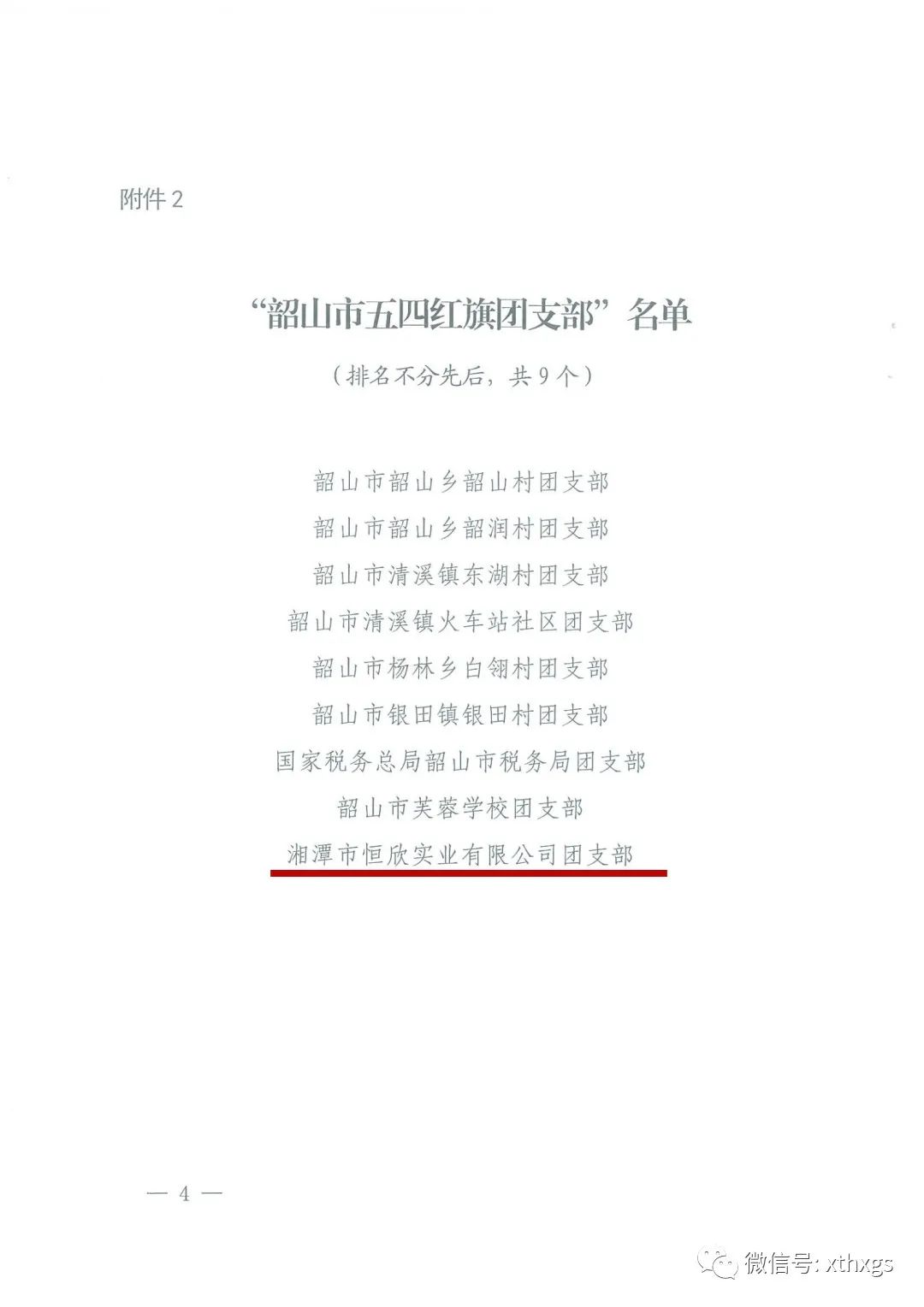 xiao12666@163.com【湘潭恒欣】喜獲湘潭市、韶山市"五四"榮譽