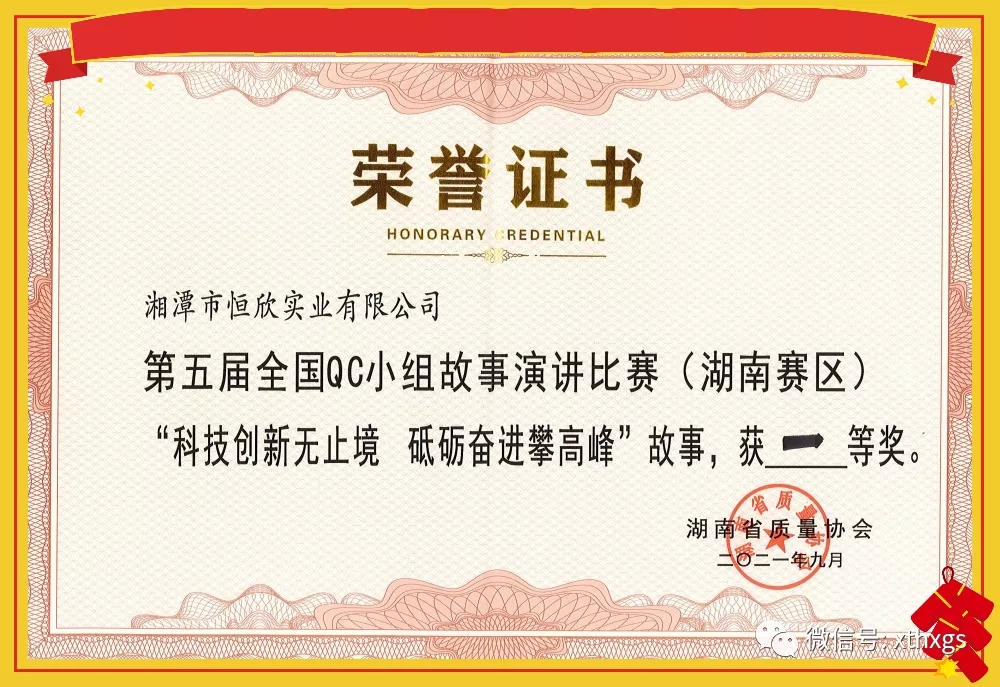 xiao12666@163.com【湘潭恒欣】榮獲第五屆全國(guó)QC小組故事演講比賽湖南賽區(qū)一等獎(jiǎng)