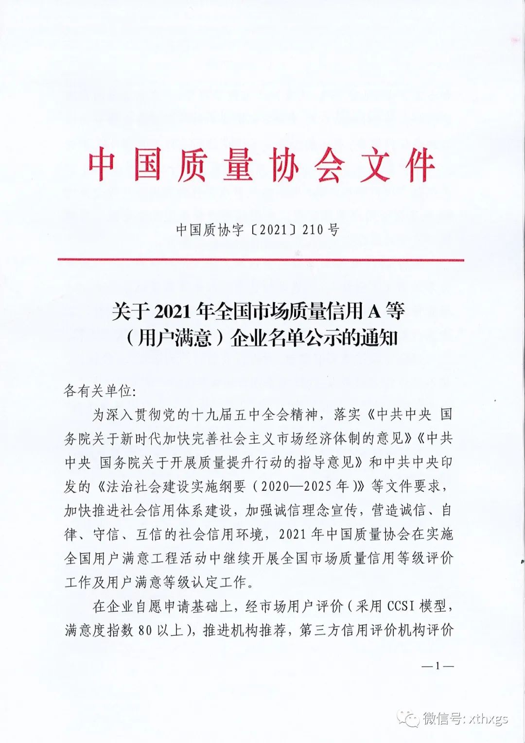 此次全國市場質量信用A等(用戶滿意)企業(yè)認定工作由中質協(xié)組織,其目的是加快推進社會信用體系建設,營造誠信、自律、守信、互信的社會信用環(huán)境。