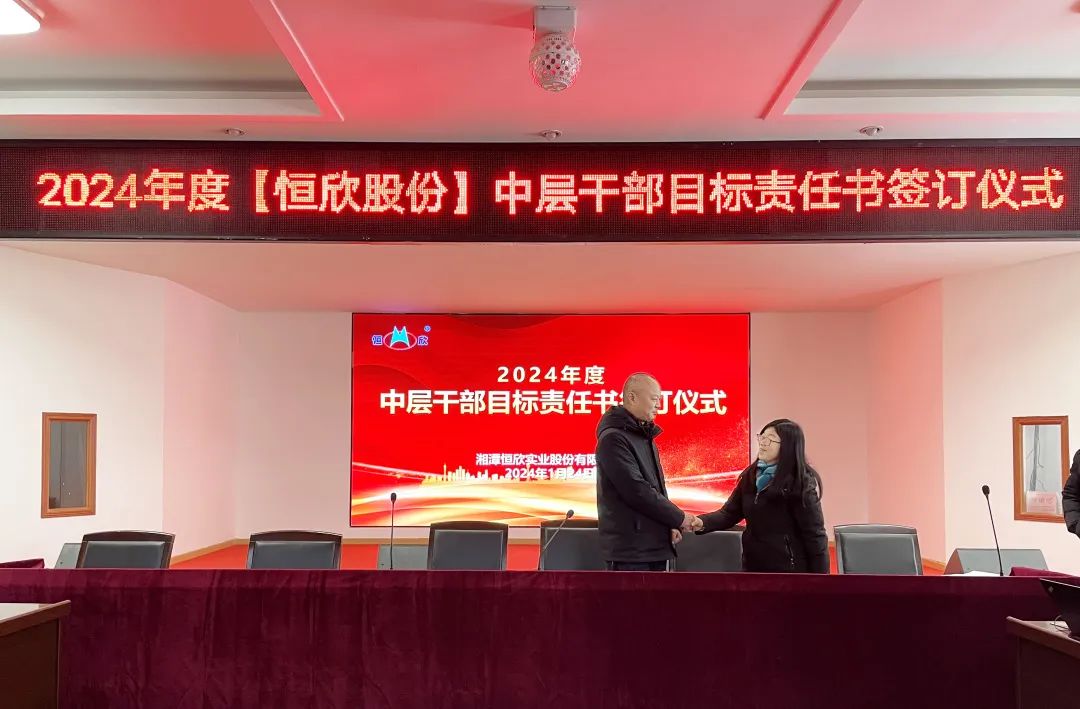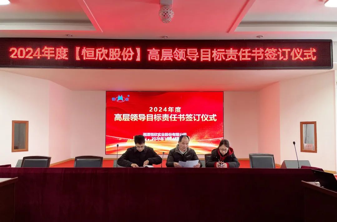 鳴鼓掛帥錨目標(biāo),滿弓勁發(fā)啟新程!1月24日下午,【恒欣股份】舉行2024年度目標(biāo)責(zé)任書簽訂儀式。儀式由董事長肖公平主持,副董事長肖連平、總經(jīng)理肖龍武和全體高層領(lǐng)導(dǎo)、中層干部參加了簽訂儀式。
