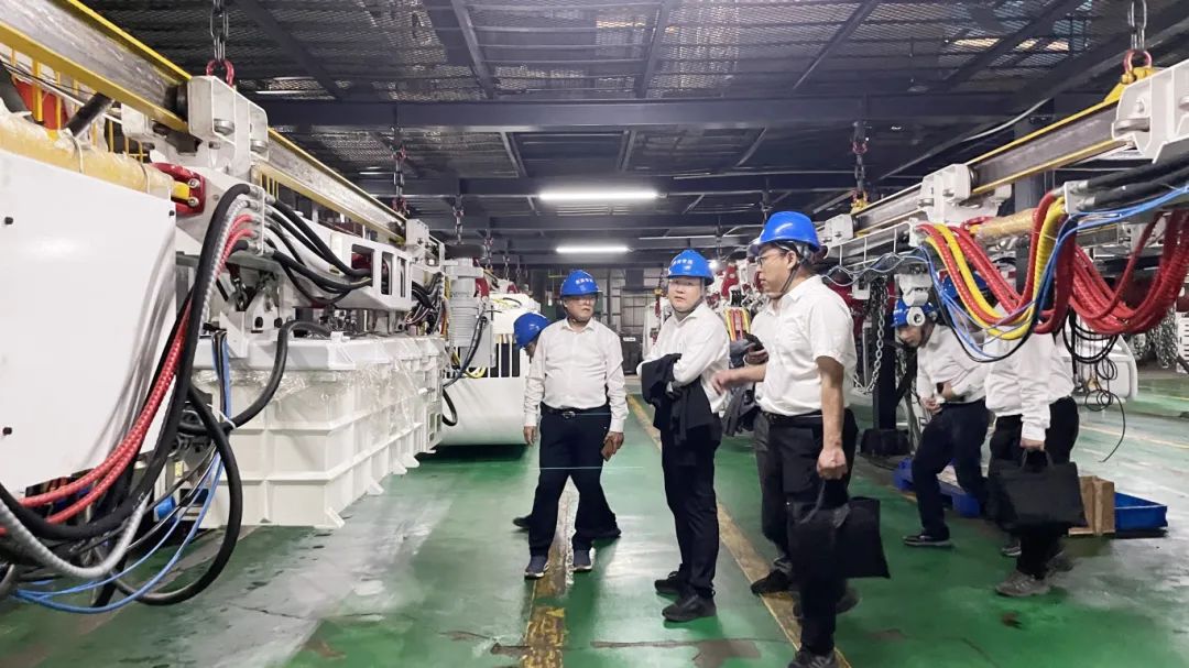 在肖董事長的陪同下,孟院長一行先后參觀了企業(yè)榮譽展廳、單軌吊試驗線、礦山裝備工業(yè)互聯網智能管控平臺及技術中心等區(qū)域,并深入生產車間,通過參觀數控下料車間、機器人智能焊接車間、五軸數控鏜銑加工中心、智能數控自動生產線等區(qū)域。孟院長一行詳細了解了單軌吊的制造工藝流程,并對【恒欣股份】單軌吊的自制化程度給予高度評價。在單軌吊裝配區(qū)肖董事長通過對標同行企業(yè),重點介紹了【恒欣股份】單軌吊在安全指標和性能方面的優(yōu)勢。