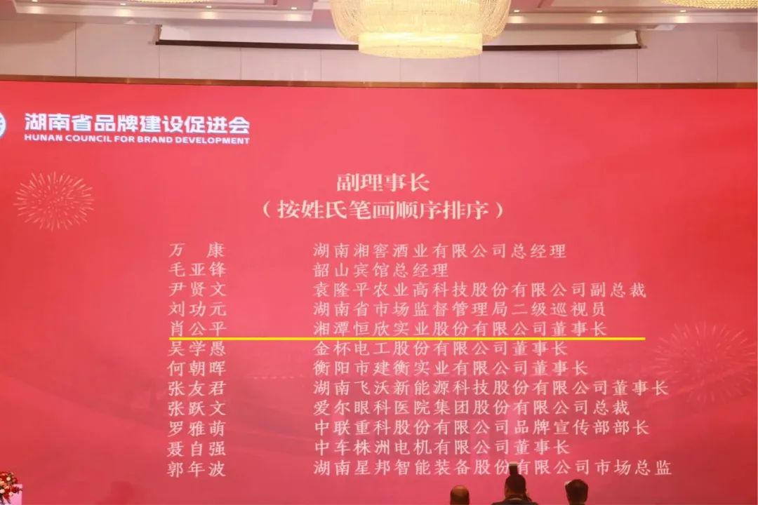 湖南省品牌建設(shè)促進(jìn)會成立大會暨第一次會員代表大會選舉產(chǎn)生了第一屆理事會輪值理事長、常務(wù)副理事長、副理事長、秘書長、法人代表和監(jiān)事會監(jiān)事長,組建了協(xié)會首屆工作班子?!竞阈拦煞荨慷麻L肖公平當(dāng)選湖南省品牌建設(shè)促進(jìn)會副理事長,【恒欣股份】當(dāng)選副理事長單位,并是本大會成立的發(fā)起單位之一。