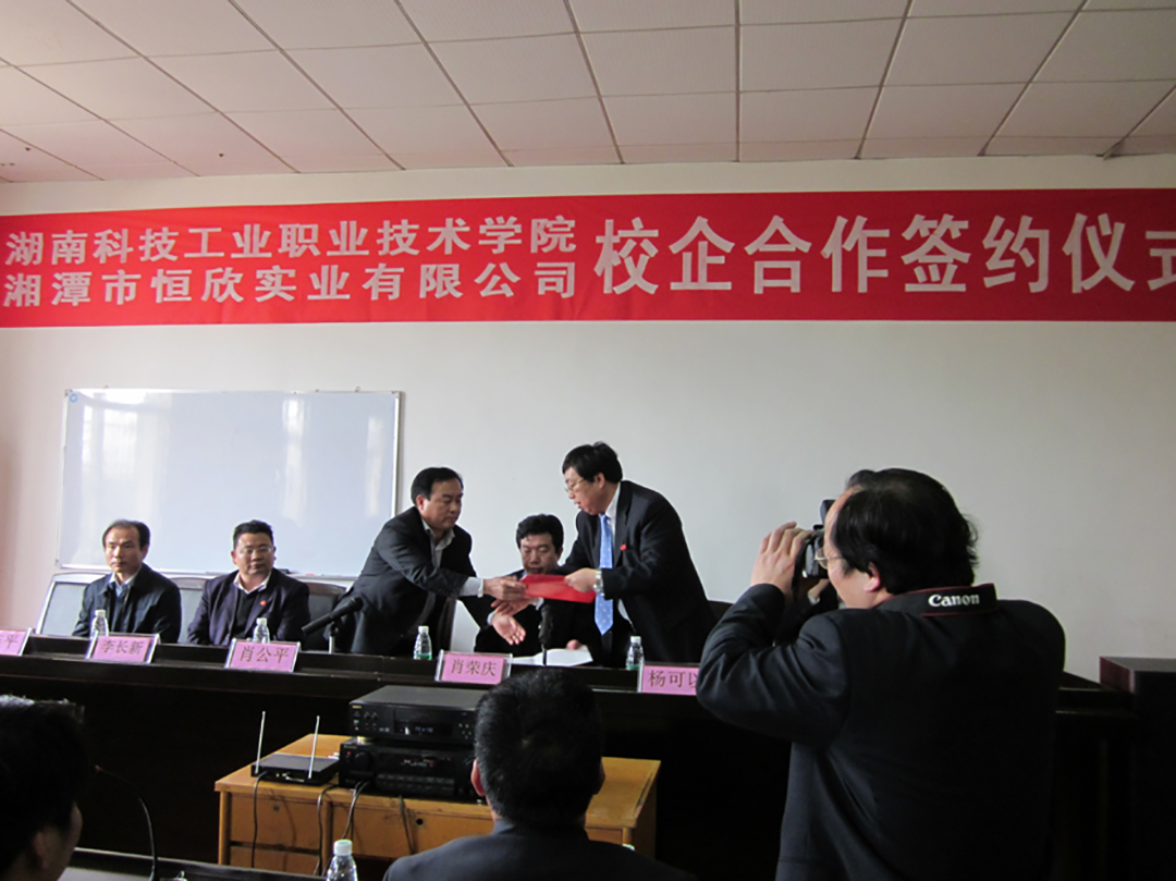 2011年3月31日,在韶山市領(lǐng)導(dǎo)的見(jiàn)證下,我公司與湖南科技工業(yè)職業(yè)技術(shù)學(xué)院簽訂了校企合作協(xié)議書(shū),校方為我公司人才培養(yǎng)基地,為我公司培養(yǎng)所需求的人才;我公司在校方設(shè)立“恒欣”班,并為其提供獎(jiǎng)學(xué)金和愛(ài)心基金。