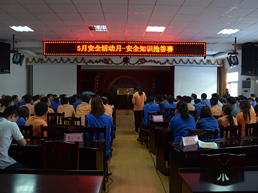 公司除開展5月專項(xiàng)安全生產(chǎn)月活動(dòng)以外,在日常工作中時(shí)刻不忘“安全就是生命,生命就是一切”的安全理念,為此,除設(shè)備安全部負(fù)責(zé)公司安全生產(chǎn)管理以外,還成立了安全管理分會(huì)進(jìn)行日常安全巡檢工作,并與各生產(chǎn)班組長(zhǎng)簽訂了安全生產(chǎn)責(zé)任狀,每月組織員工進(jìn)行安全生產(chǎn)培訓(xùn),并通過公司內(nèi)部廣播系統(tǒng)、月報(bào)、宣傳欄、QQ、微信平臺(tái)等方式進(jìn)行安全生產(chǎn)知識(shí)宣傳,使安全生產(chǎn)意識(shí)深入每位員工心中。