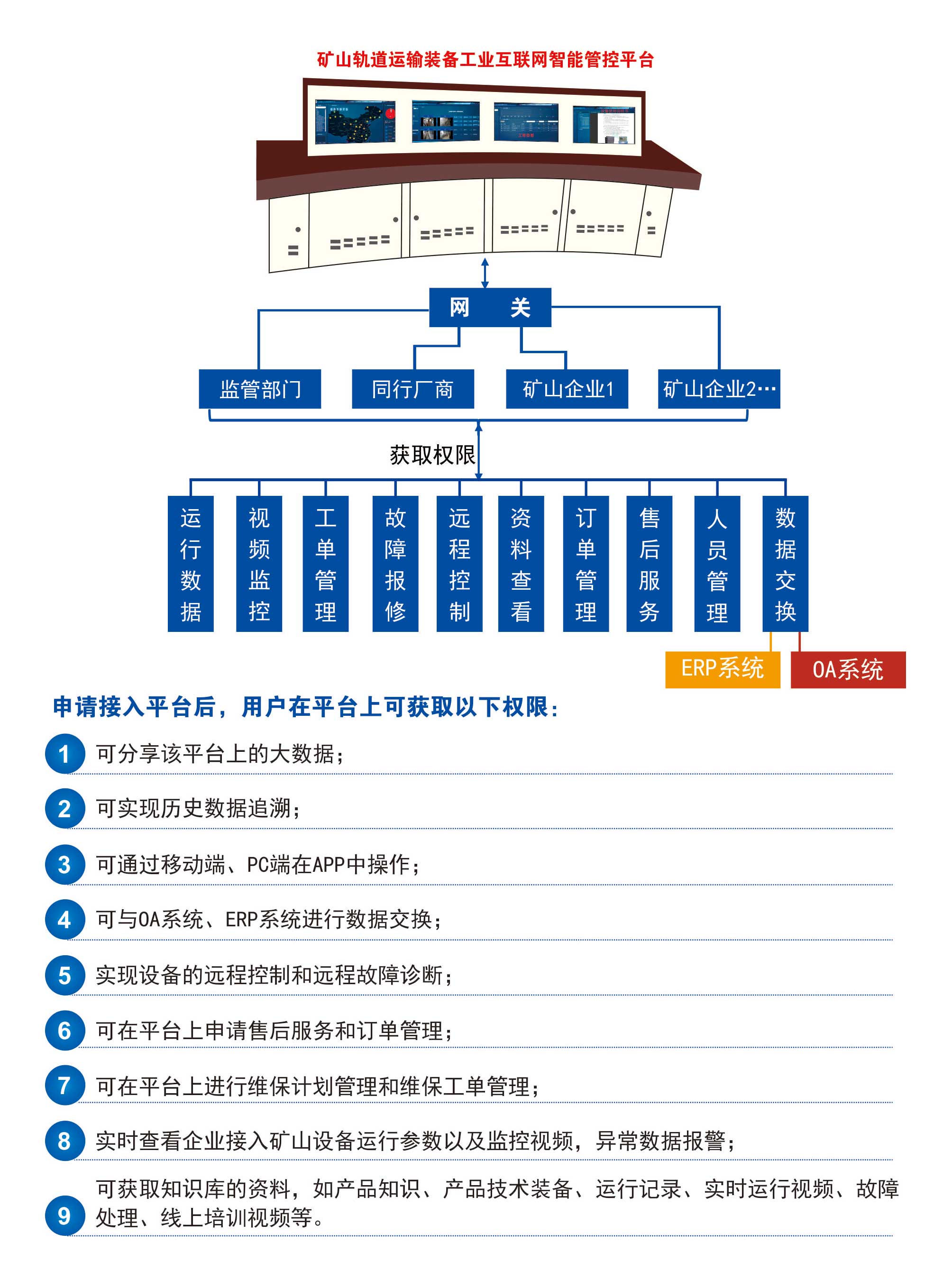 平臺(tái)用于對(duì)礦用礦山軌道運(yùn)輸智能裝備進(jìn)行實(shí)時(shí)監(jiān)控、運(yùn)行預(yù)報(bào)警、遠(yuǎn)程智能故障診斷以及數(shù)字運(yùn)維服務(wù)等,并通過工業(yè)APP實(shí)時(shí)調(diào)度設(shè)備運(yùn)維服務(wù)人員,及時(shí)處理設(shè)備故障,以提升礦山軌道運(yùn)輸智能裝備的安全運(yùn)維保障。平臺(tái)被列入湖南省“數(shù)字新基建”100個(gè)標(biāo)志性項(xiàng)目名單,2022年5月平臺(tái)通過了省級(jí)驗(yàn)收,成為全省十八塊“湖南省工業(yè)互聯(lián)網(wǎng)平臺(tái)”之一,平臺(tái)的工業(yè)APP入選“湖南省2021年優(yōu)秀工業(yè)APP”。