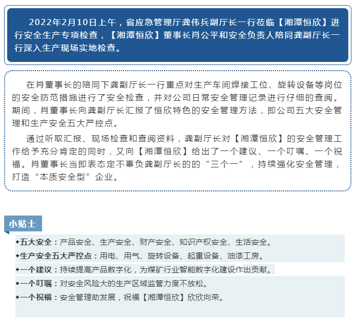 xiao12666@163.com省應(yīng)急管理廳龔偉兵副廳長帶隊蒞臨【湘潭恒欣】檢查企業(yè)復(fù)工復(fù)產(chǎn)安全防范工作