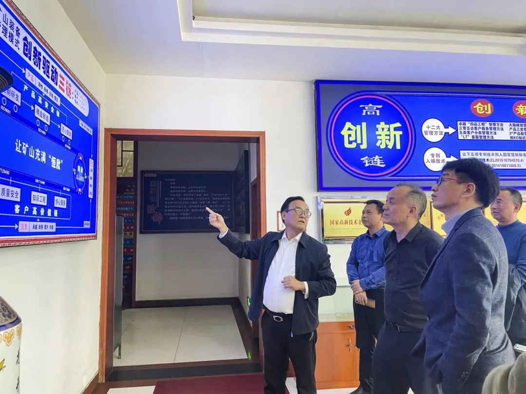 在董事長肖公平的陪同下,賀副校長一行先后參觀了企業(yè)榮譽展廳、數(shù)控自動生產(chǎn)線、單軌吊試驗區(qū)以及礦山裝備工業(yè)互聯(lián)網(wǎng)智能管控平臺等區(qū)域。隨后,在物聯(lián)網(wǎng)中心進(jìn)行座談,肖董事長向賀副校長一行介紹了企業(yè)基本情況,技術(shù)創(chuàng)新能力以及產(chǎn)品市場前景等,賀副校長一行對【恒欣股份】二十多年來深耕礦山軌道運輸智能裝備給予了高度的肯定。同時,肖董事長就近年來,隨著新一代信息技術(shù)的快速發(fā)展,數(shù)字化、智能化技術(shù)與礦山軌道運輸裝備的融合進(jìn)程不斷加速,提出了礦山企業(yè)、大專院校和技術(shù)創(chuàng)新企業(yè)共同關(guān)注的話題——礦山AI人工智能建設(shè),雙方進(jìn)行了深入討論。接著就產(chǎn)品工業(yè)設(shè)計方面雙方達(dá)成了合作意向,此次是繼今年1月份湖南科技大學(xué)與【恒欣股份】聯(lián)合打造的礦山裝備智能技術(shù)研究院正式揭牌后的再次合作。堅信通過校企合作,實現(xiàn)資源共享和互補(bǔ),共同為礦山軌道運輸智能裝備的發(fā)展貢獻(xiàn)力量。