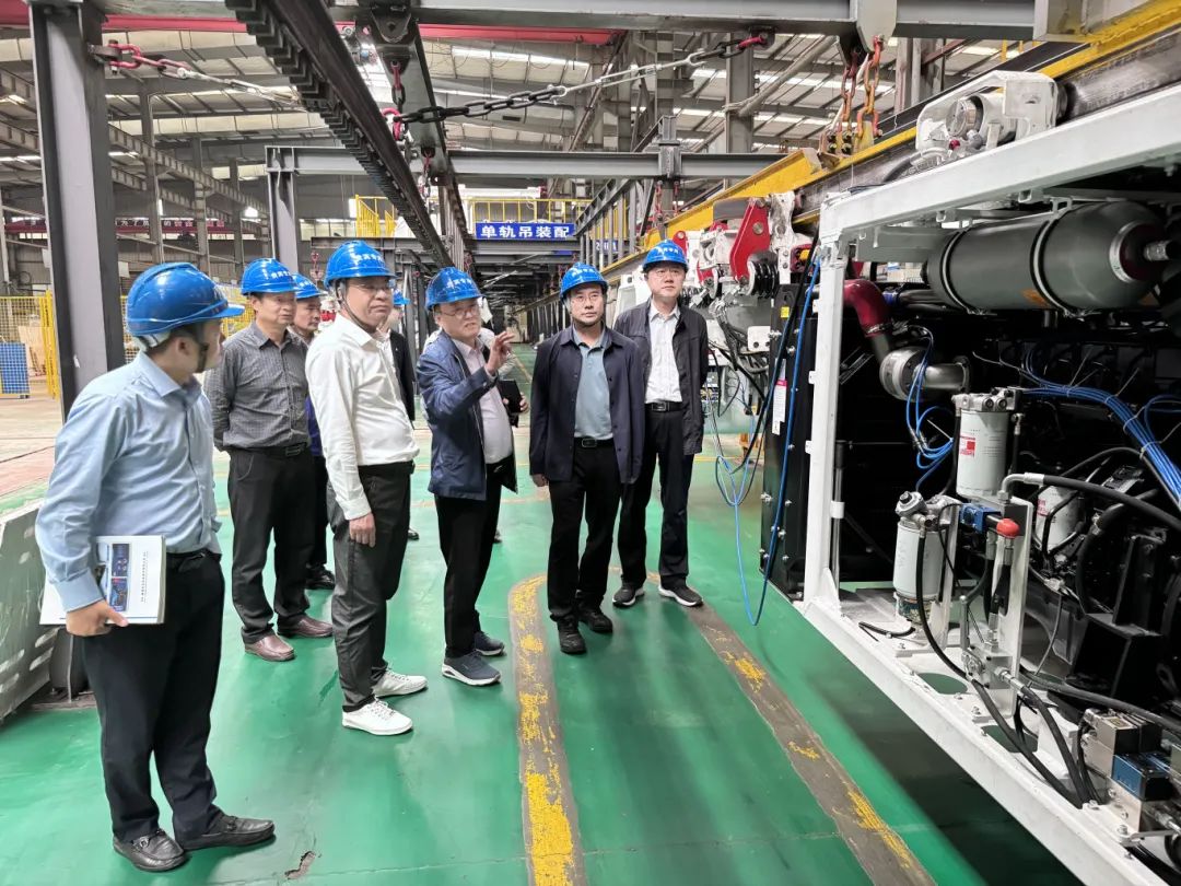 座談會上,肖董事長向梁副市長一行介紹了企業(yè)基本情況、技術(shù)創(chuàng)新能力、產(chǎn)品市場前景、發(fā)展規(guī)劃等情況。梁副市長對【恒欣股份】二十多年來深耕礦山軌道運輸智能裝備給予了高度肯定。隨后,在肖董事長的陪同下,梁副市長一行先后參觀了企業(yè)榮譽展廳、數(shù)控下料車間、數(shù)控自動生產(chǎn)線、礦用單軌吊試驗線等區(qū)域。在參觀礦用單軌吊試驗區(qū)時,肖董事長向梁副市長一行詳細介紹了礦用單軌吊的產(chǎn)品類型、AI視頻、無人駕駛等技術(shù)優(yōu)勢,并重點講解了【恒欣股份】單軌吊優(yōu)于同行業(yè)產(chǎn)品的安全指標和性能。