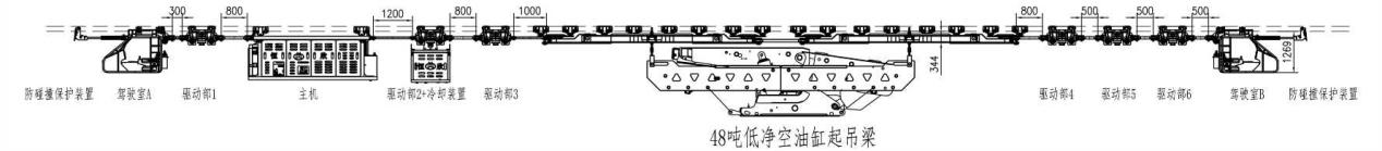方式二:起吊梁位于最前端位置,適用于直接將液壓支架運(yùn)輸?shù)焦ぷ髅媲醒畚恢眠\(yùn)輸方式,采用低凈空油缸或葫蘆起吊梁,常用于大噸位液壓支架運(yùn)輸。