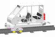 駕駛室由AI路況探測機(jī)器人、駕駛室、駕駛室底架、卡軌裝置等組成。其中駕駛室內(nèi)包含路況顯示屏和工況顯示屏,操控箱等。當(dāng)配置3驅(qū)和4驅(qū)時(shí),另兩驅(qū)動單元安裝在駕駛室底架上,減小機(jī)車長度。