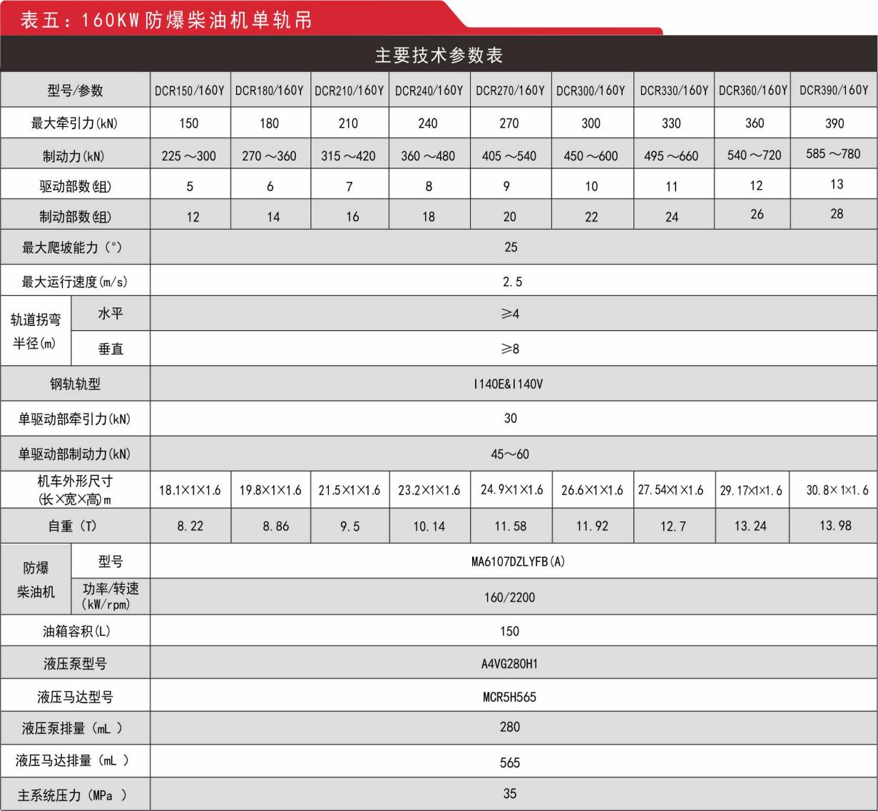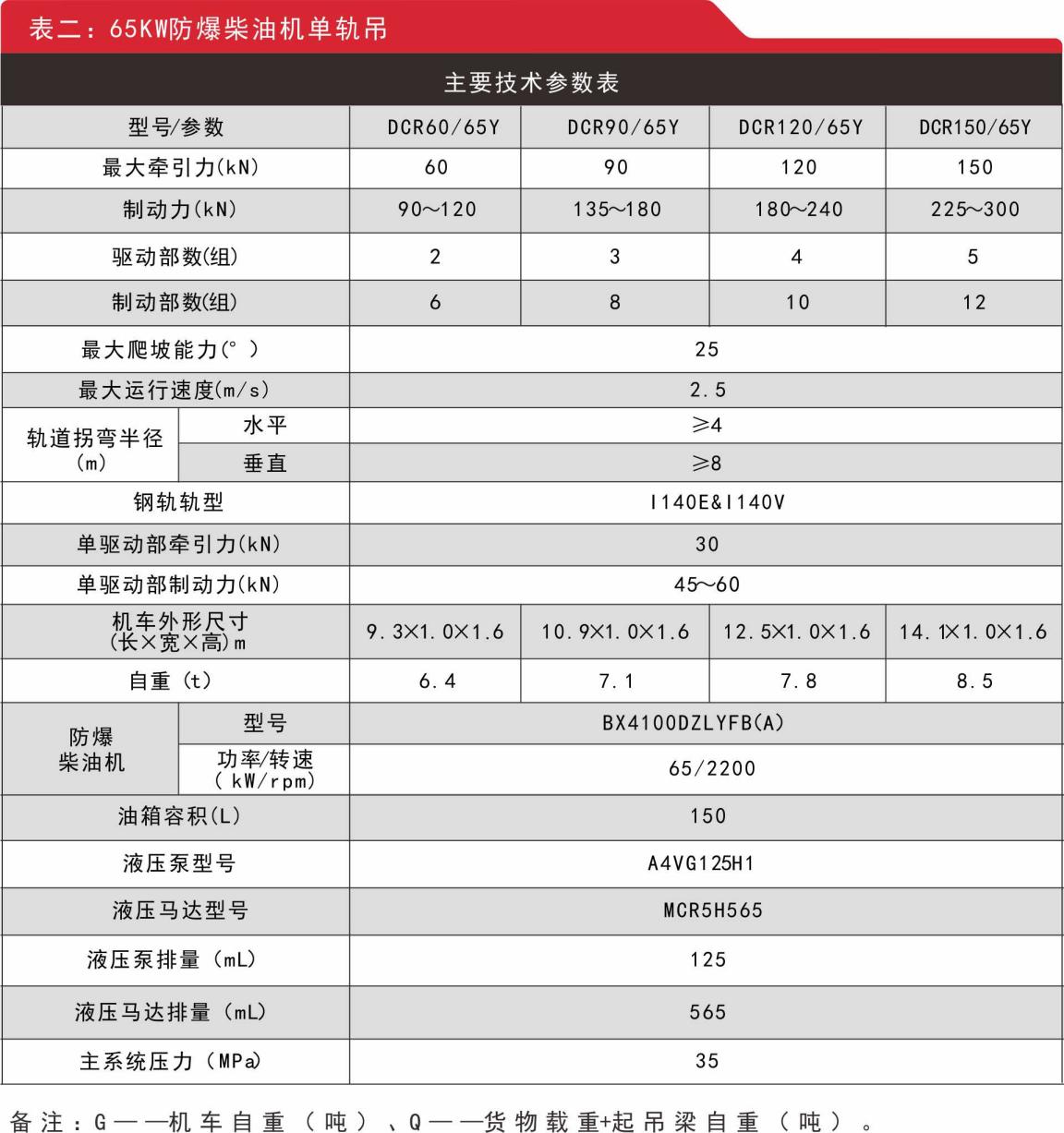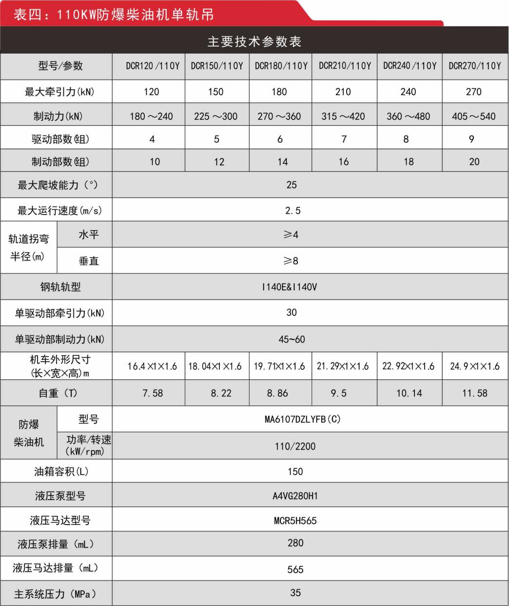 五、防爆柴油機單軌吊參數(shù)(全馬達/半馬達驅動部)