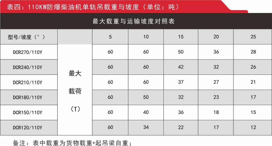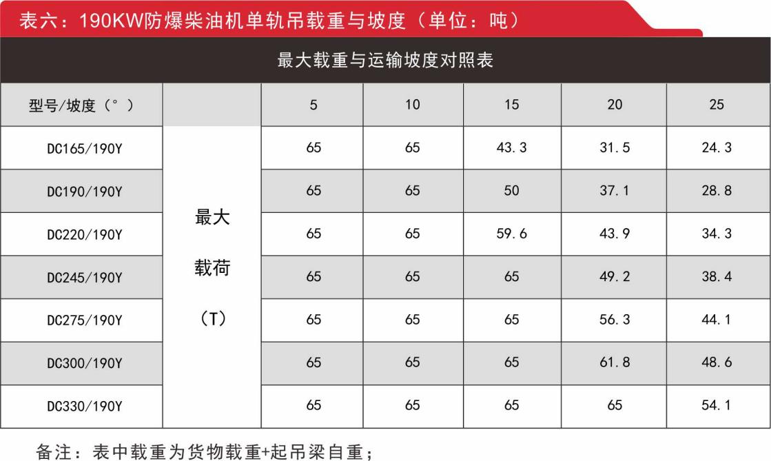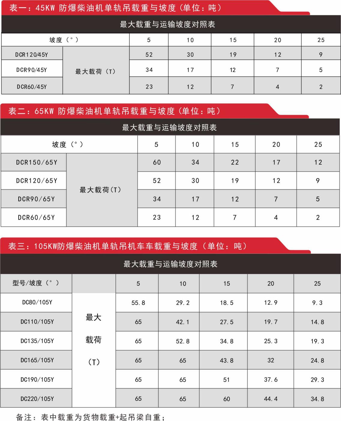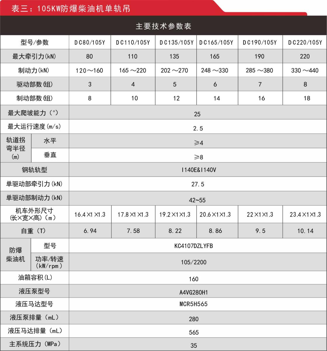 五、防爆柴油機單軌吊參數(shù)(全馬達/半馬達驅動部)