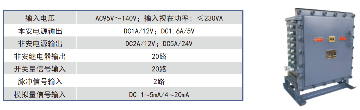 采用澆封防爆結(jié)構(gòu),具有過流保護(hù)、短路保護(hù)功能,故障排除后能自動(dòng)恢復(fù)等特點(diǎn);本產(chǎn)品體 積小,重量輕,安裝方便,安全可靠;主要適用于煤礦井下有瓦斯、煤塵等爆炸性氣體的危險(xiǎn)環(huán)境中,給本安型設(shè)備供電。
