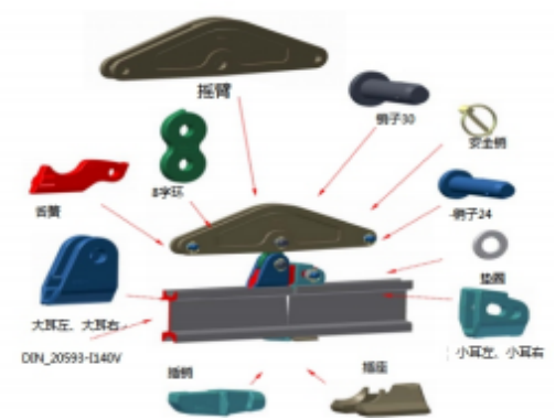 道岔應(yīng)用于單軌吊軌道分道,其分為左開(kāi)道岔、右開(kāi)道岔、雙開(kāi)道岔(對(duì)稱道岔)。