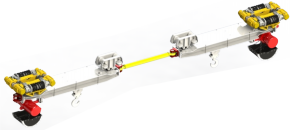 單軌吊速度保護(hù)小車設(shè)有離心限速裝置和編碼器測(cè)速裝置,安裝在電液車和柴油機(jī)車主機(jī)上方??捎糜趩诬壍醭休d、行走及導(dǎo)向,當(dāng)機(jī)車運(yùn)行速度超過(guò)設(shè)計(jì)最大運(yùn)行速度的15%時(shí),控制機(jī)車緊急制動(dòng)。