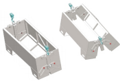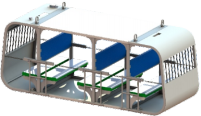 物料箱包含吊裝結(jié)構(gòu)和箱體。箱體容積可根據(jù)礦方需求定制,用于裝載描桿、矸石等小型貨物。物料箱分為底卸式結(jié)構(gòu)和側(cè)翻式結(jié)構(gòu),當(dāng)運(yùn)輸?shù)街付ㄎ恢脮r(shí),物料箱下方封板或側(cè)面可以打開(kāi),將貨物落下,從而大大減少貨物的裝卸時(shí)間。