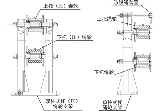 無極繩絞車帶動鋼絲繩無極循環(huán)運(yùn)行,行人將卡繩棒卡住上山運(yùn)行的鋼絲繩,并由上山運(yùn)行的鋼絲繩將人拖動向上助力上坡,